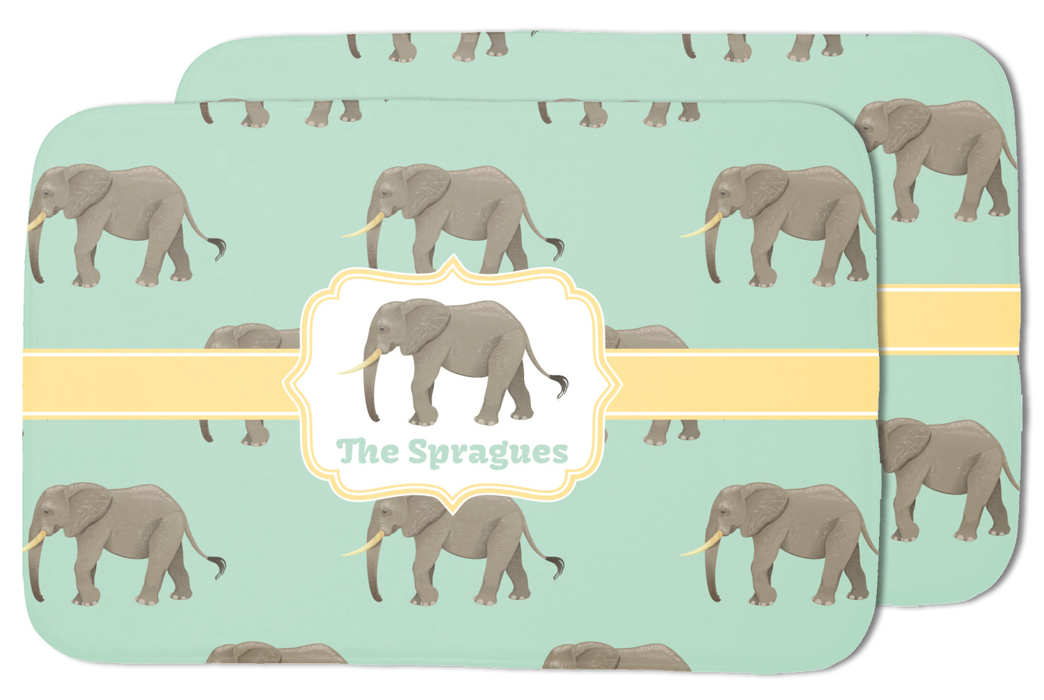 An elephant never forgets, and we hope you won't forget this Elephant design. The design shows gray, tusked elephants on a mint background with a light yellow ribbons. The center has a label with an elephant and a space for text.