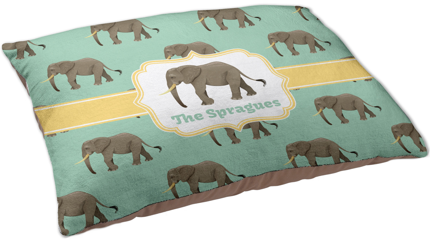 An elephant never forgets, and we hope you won't forget this Elephant design. The design shows gray, tusked elephants on a mint background with a light yellow ribbons. The center has a label with an elephant and a space for text.