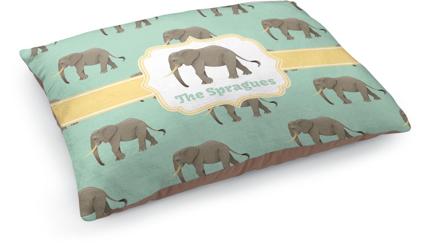 An elephant never forgets, and we hope you won't forget this Elephant design. The design shows gray, tusked elephants on a mint background with a light yellow ribbons. The center has a label with an elephant and a space for text.