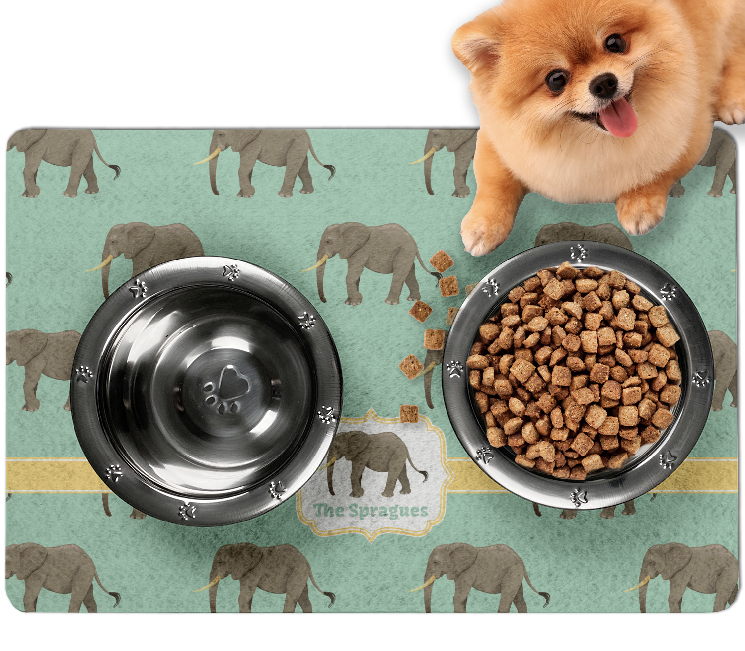 Frustrated with the mess your pets make during mealtime? Personalize a multi-functional dog food mat that prevents spills from reaching your floors, while also incorporating some cute decor to your dog's eating area!