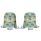 Our drawstring backpacks are available in 3 sizes. Small is approx 15in tall by 13in wide. Medium is approximately 18in tall by 17in wide. Large is 23in tall and 19in wide.