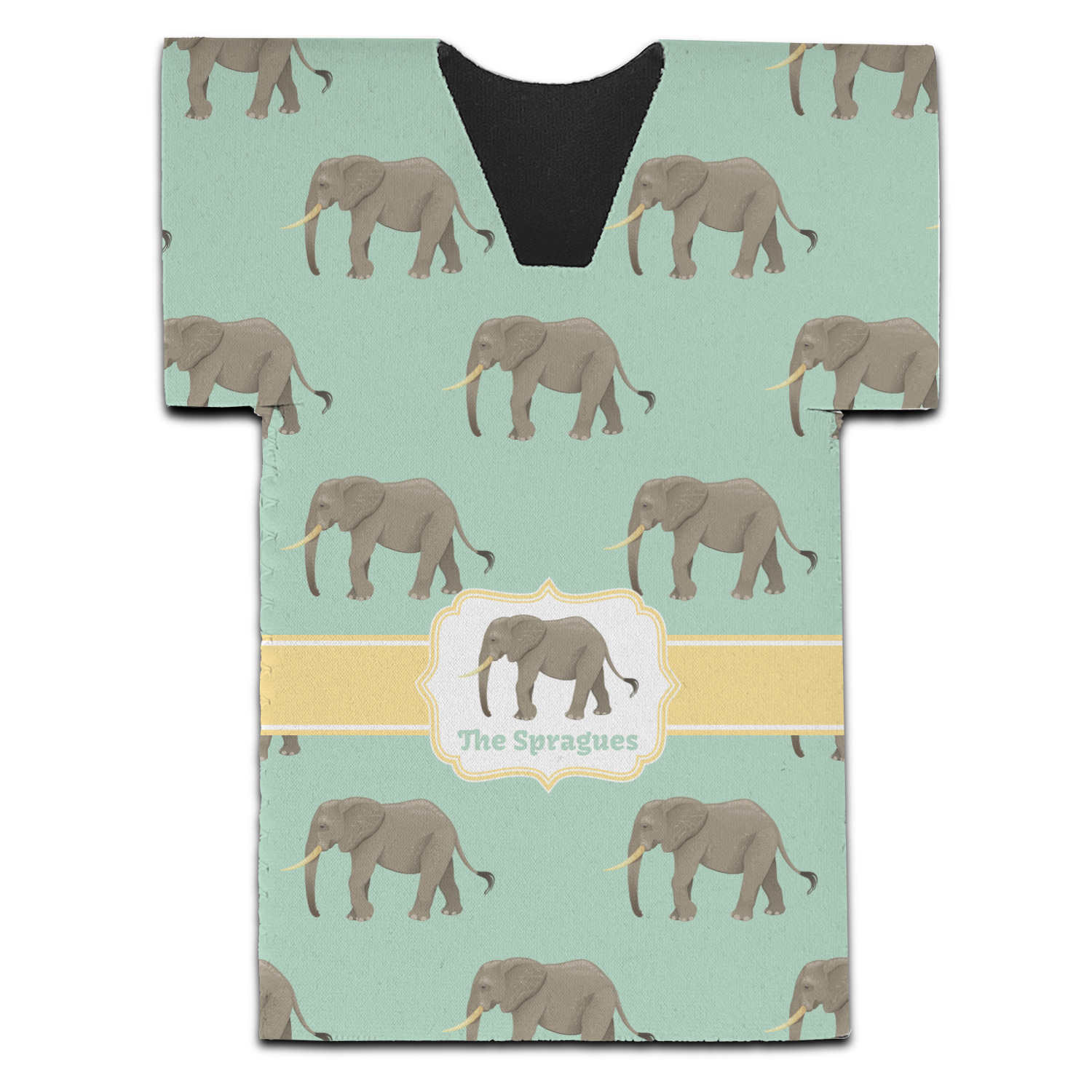 An elephant never forgets, and we hope you won't forget this Elephant design. The design shows gray, tusked elephants on a mint background with a light yellow ribbons. The center has a label with an elephant and a space for text.