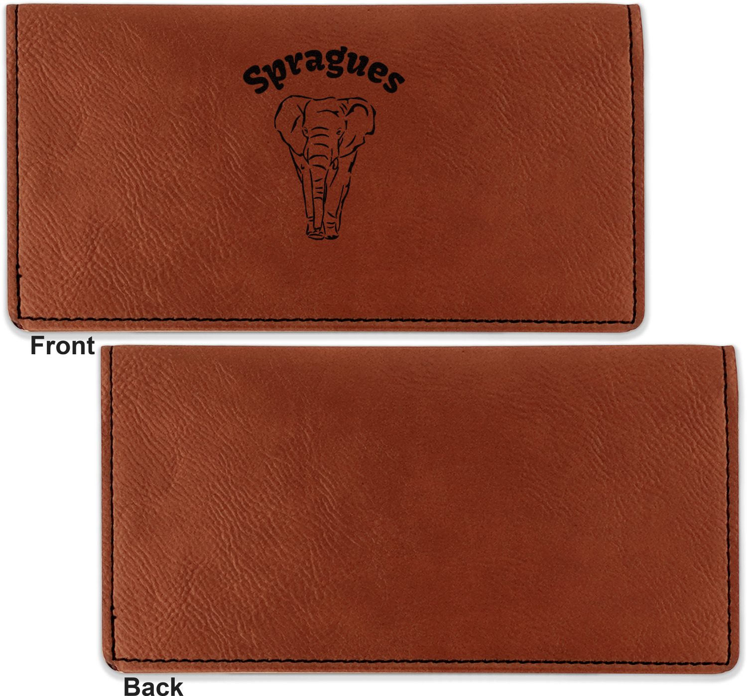 Go into our design center to start personalizing. Your checkbook cover will be laser engraved, making the graphic or text a black color. Choose a fun saying, monogram, or font to go on your checkbook cover. You have the opportunity to do it double or single sided.