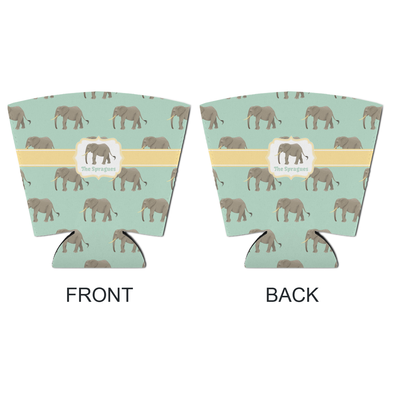 An elephant never forgets, and we hope you won't forget this Elephant design. The design shows gray, tusked elephants on a mint background with a light yellow ribbons. The center has a label with an elephant and a space for text.