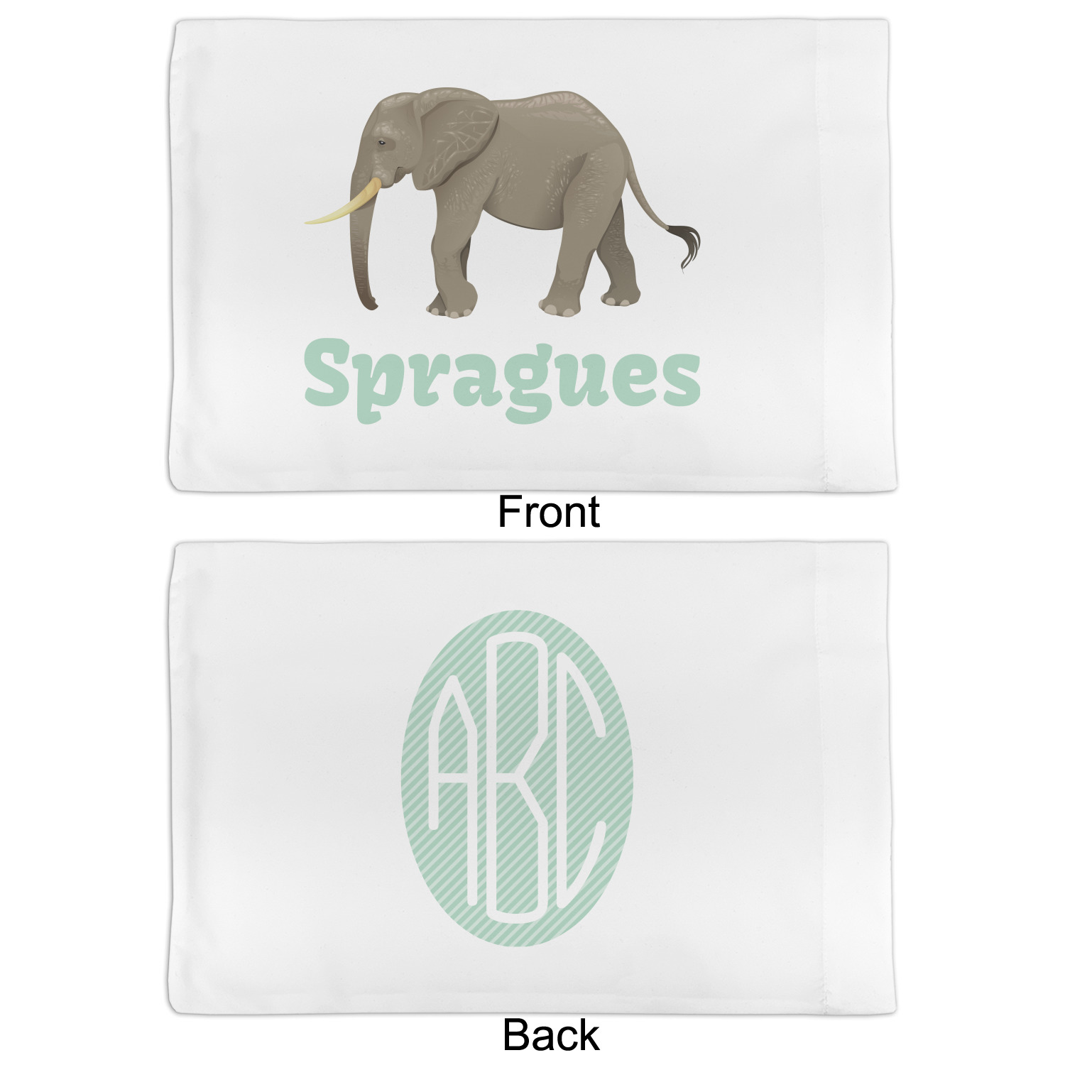 An elephant never forgets, and we hope you won't forget this Elephant design. The design shows gray, tusked elephants on a mint background with a light yellow ribbons. The center has a label with an elephant and a space for text.