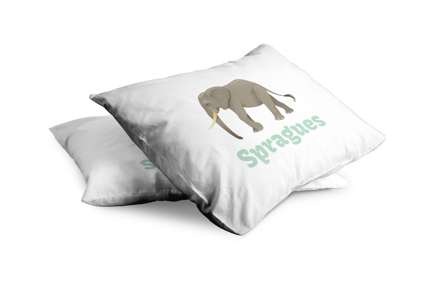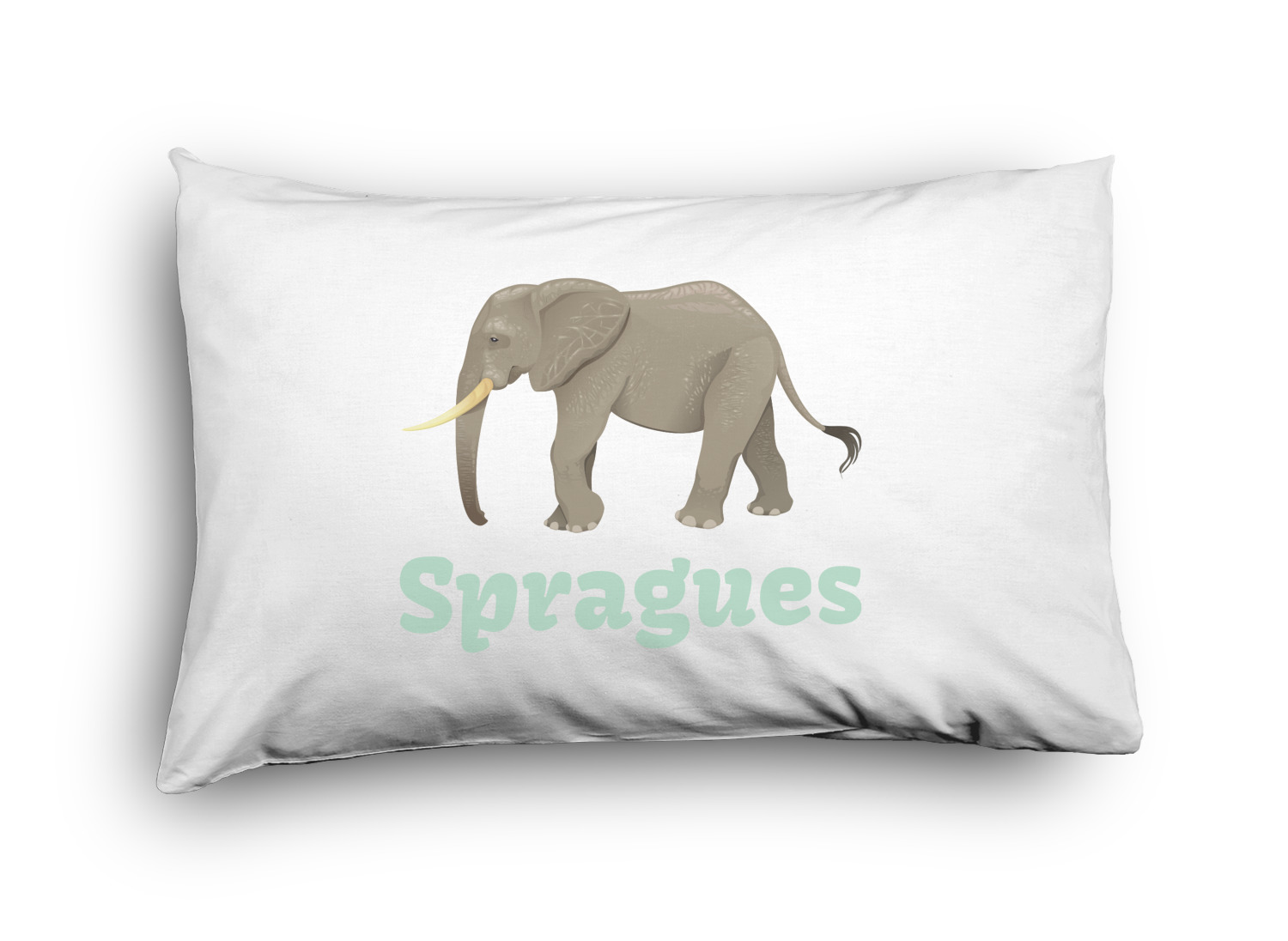 An elephant never forgets, and we hope you won't forget this Elephant design. The design shows gray, tusked elephants on a mint background with a light yellow ribbons. The center has a label with an elephant and a space for text.