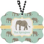 An elephant never forgets, and we hope you won't forget this Elephant design. The design shows gray, tusked elephants on a mint background with a light yellow ribbons. The center has a label with an elephant and a space for text.