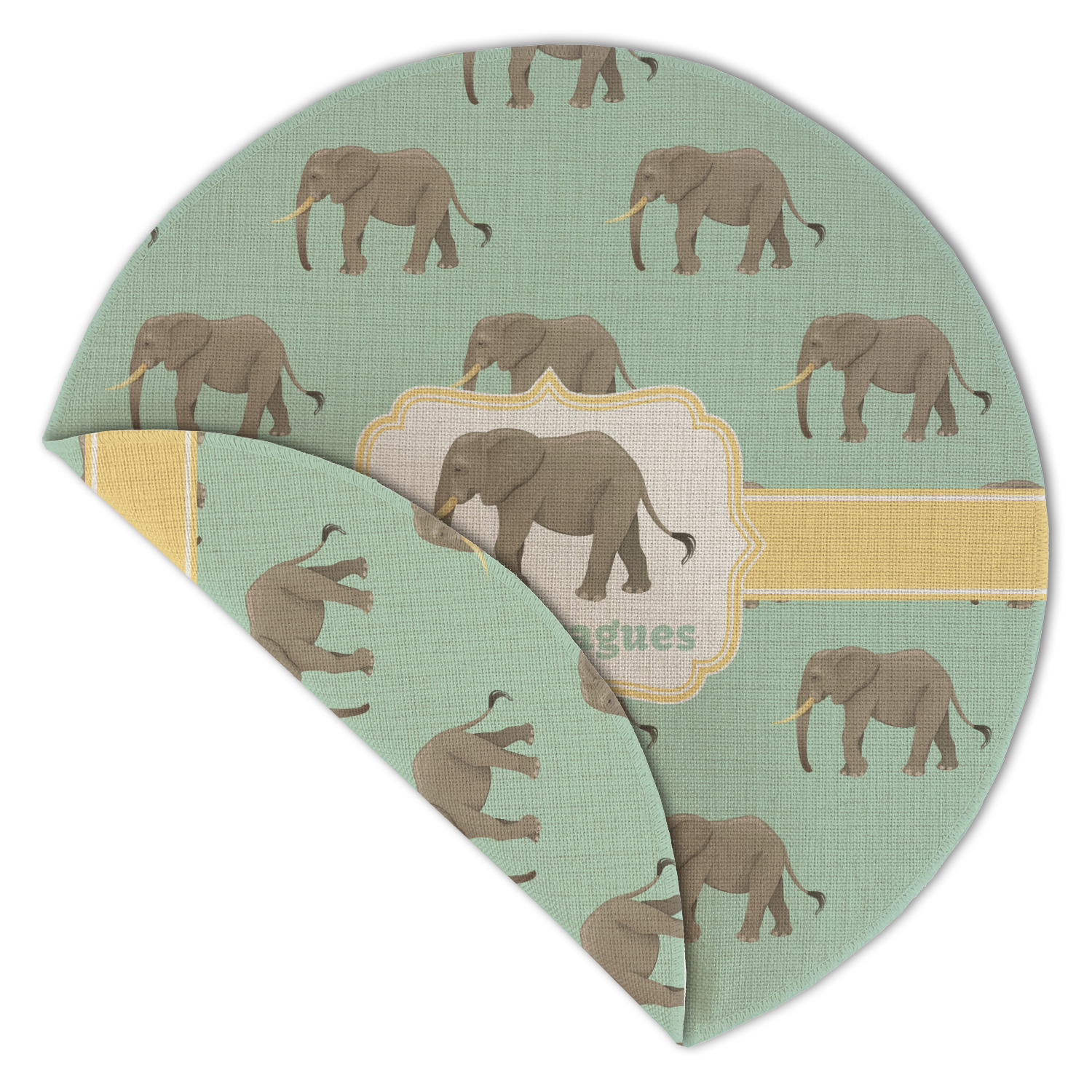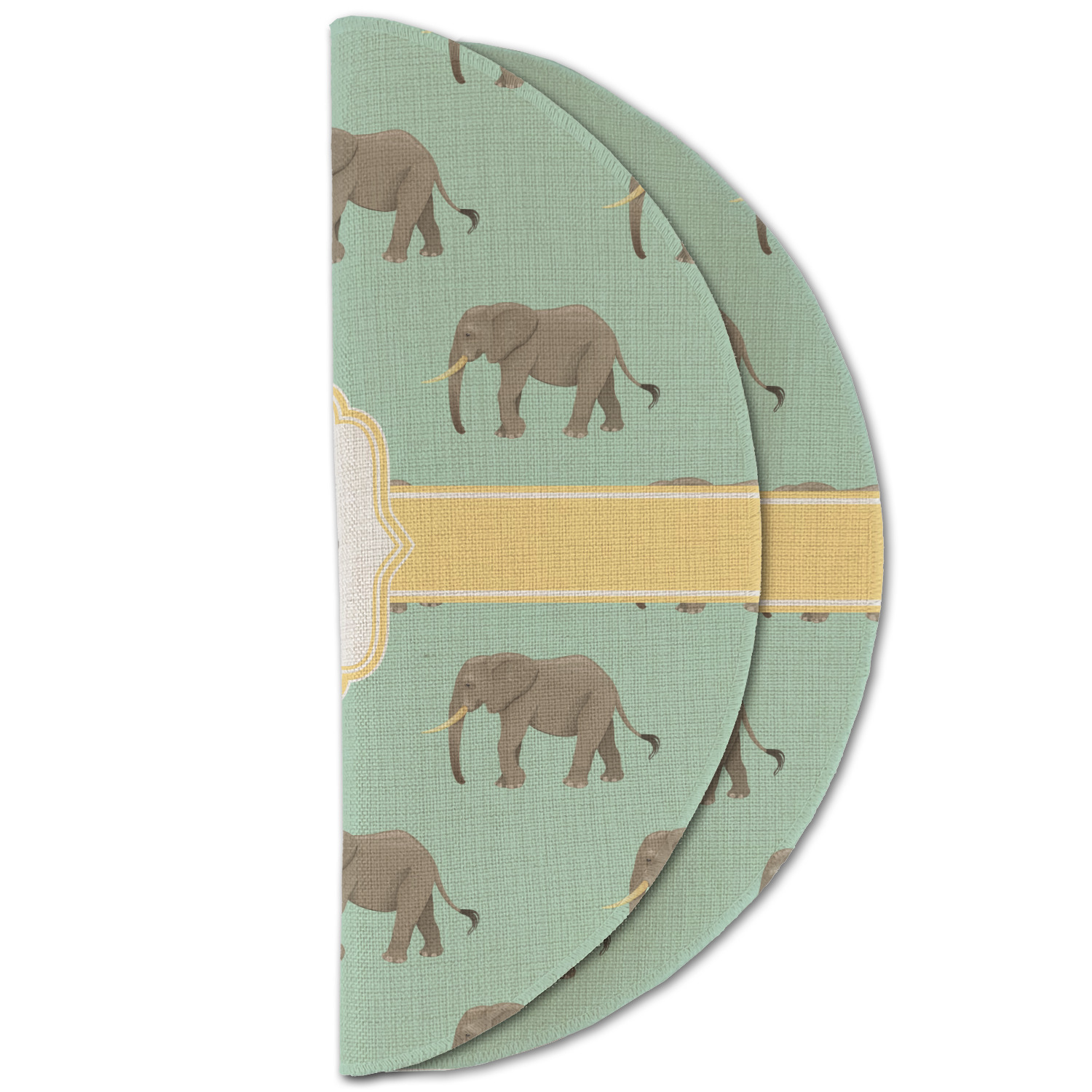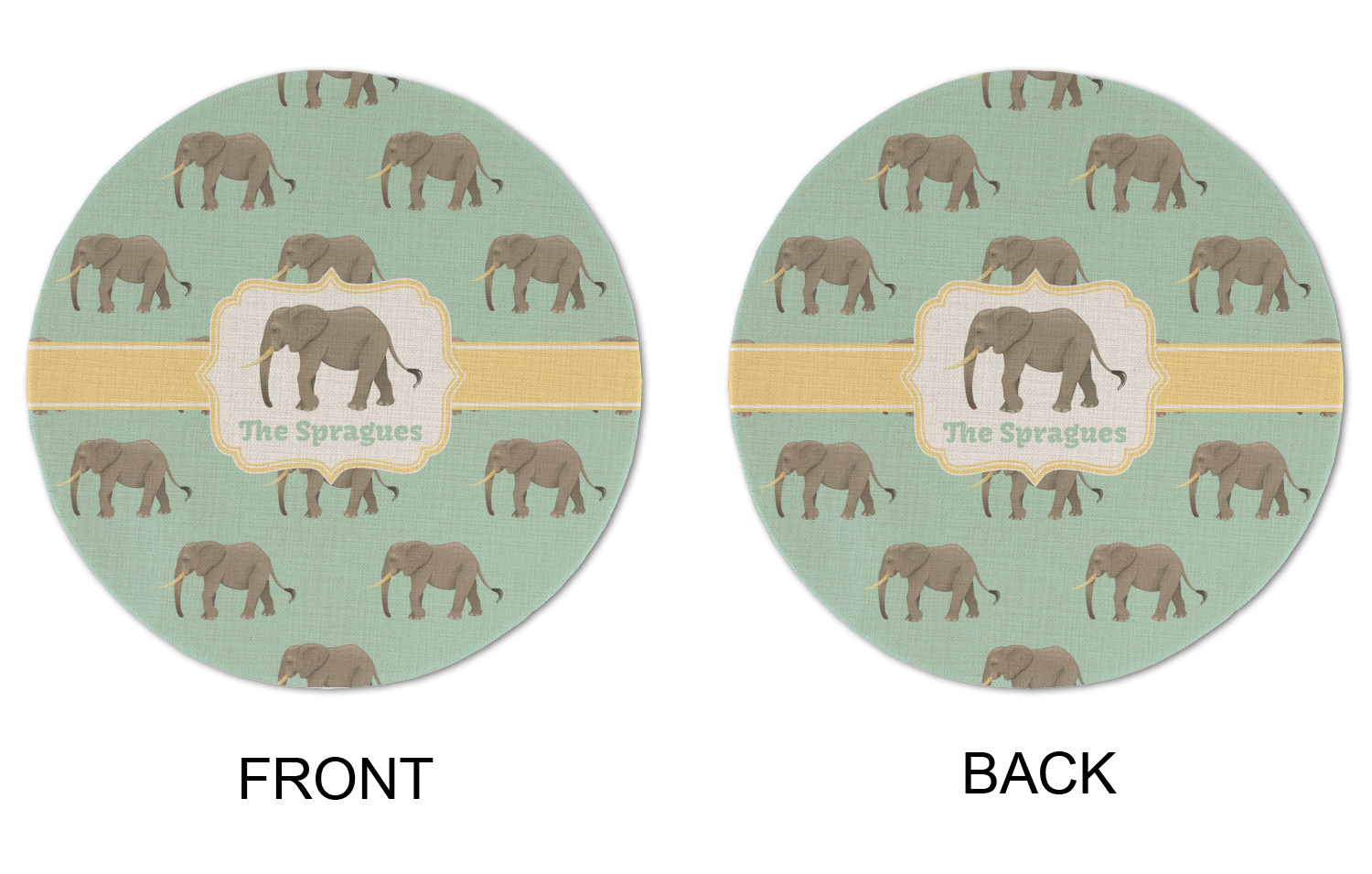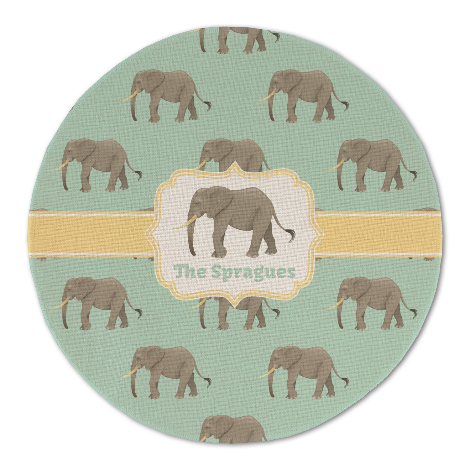 An elephant never forgets, and we hope you won't forget this Elephant design. The design shows gray, tusked elephants on a mint background with a light yellow ribbons. The center has a label with an elephant and a space for text.
