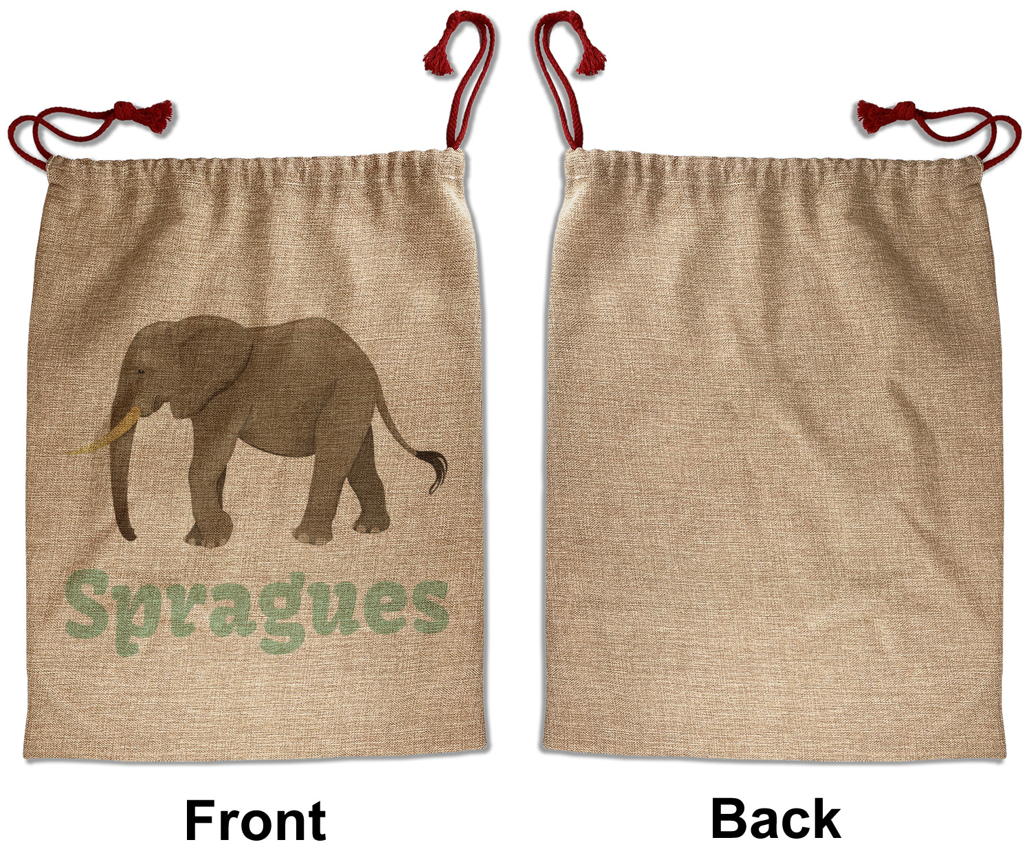 Our Santa sacks print your design on the burlap material giving it a nice rustic, natural design! The burlap material is also machine washable and wrinkle-free, so feel free to fold and store out Santa bags until the next time you need it! Secure your gifts with our red accent drawstring ties at the top of the sack so the mystery of your gift stays a surprise until Christmas day. We offer two types of printing- one side partial print or double-sided partial printing. Design and personalize your own Santa sack in time for the holidays!
