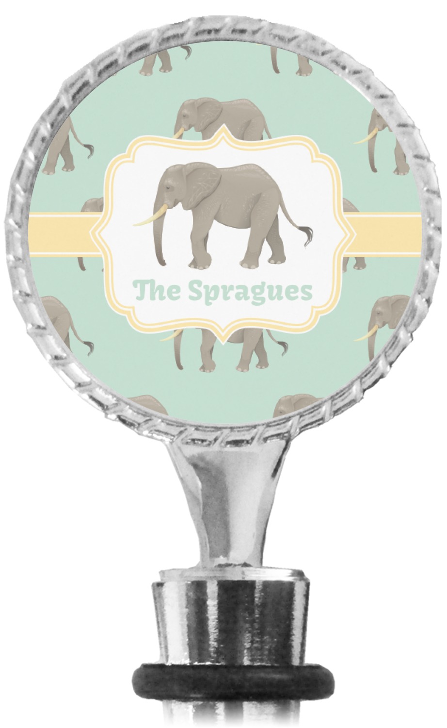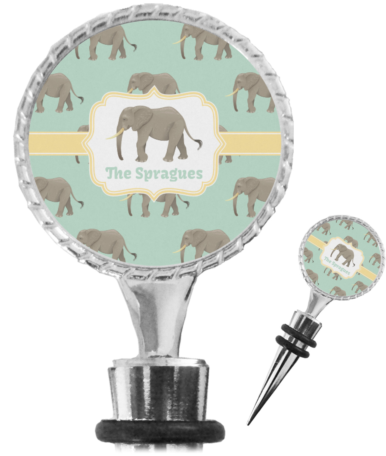 The top part of your bottle stopper is comprised of a zinc ring that displays your customization(s) in its middle, on both sides. The ring is heavy duty, with a bright chrome finish. The body of the wine stoppers have two silicone rings to provide an airtight seal. These wine bottle stoppers measure at 1.625" L x 0.8125" W x 4.625" H; your custom wine stopper is meant to fit into most standard-sized wine bottles.