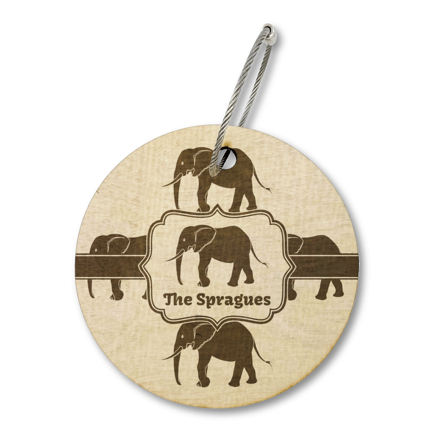 An elephant never forgets, and we hope you won't forget this Elephant design. The design shows gray, tusked elephants on a mint background with a light yellow ribbons. The center has a label with an elephant and a space for text.