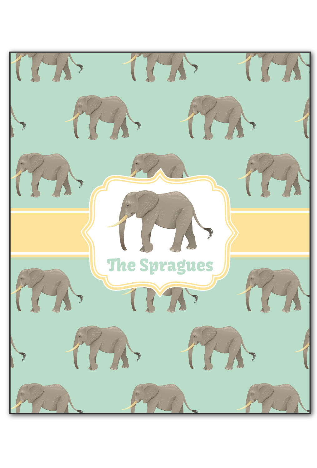 An elephant never forgets, and we hope you won't forget this Elephant design. The design shows gray, tusked elephants on a mint background with a light yellow ribbons. The center has a label with an elephant and a space for text.