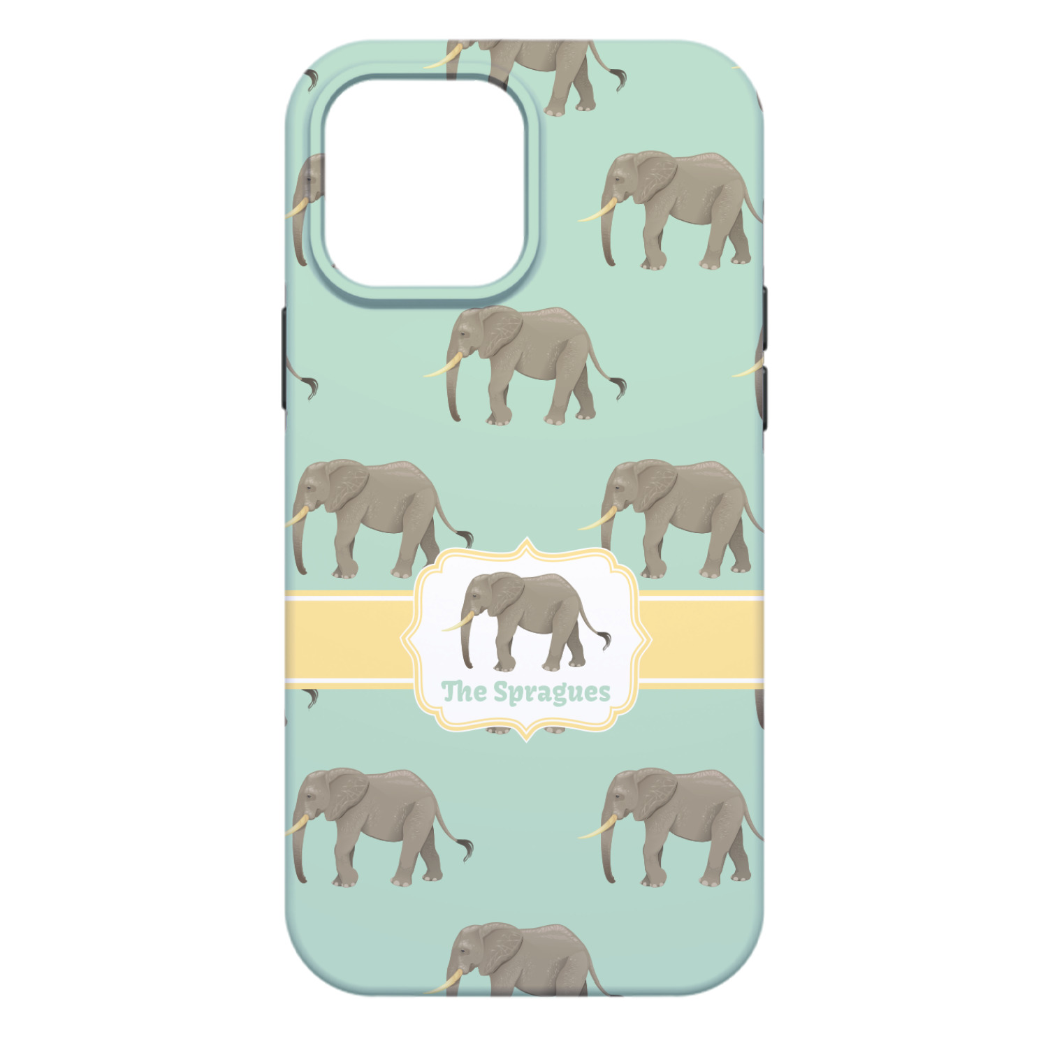 An elephant never forgets, and we hope you won't forget this Elephant design. The design shows gray, tusked elephants on a mint background with a light yellow ribbons. The center has a label with an elephant and a space for text.