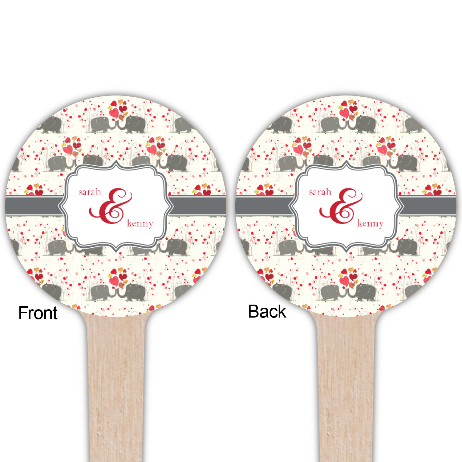 A demure gray ribbon matching the elephants' hides ties the whole design together. Add His&Her's names in the decorative label for that special touch.