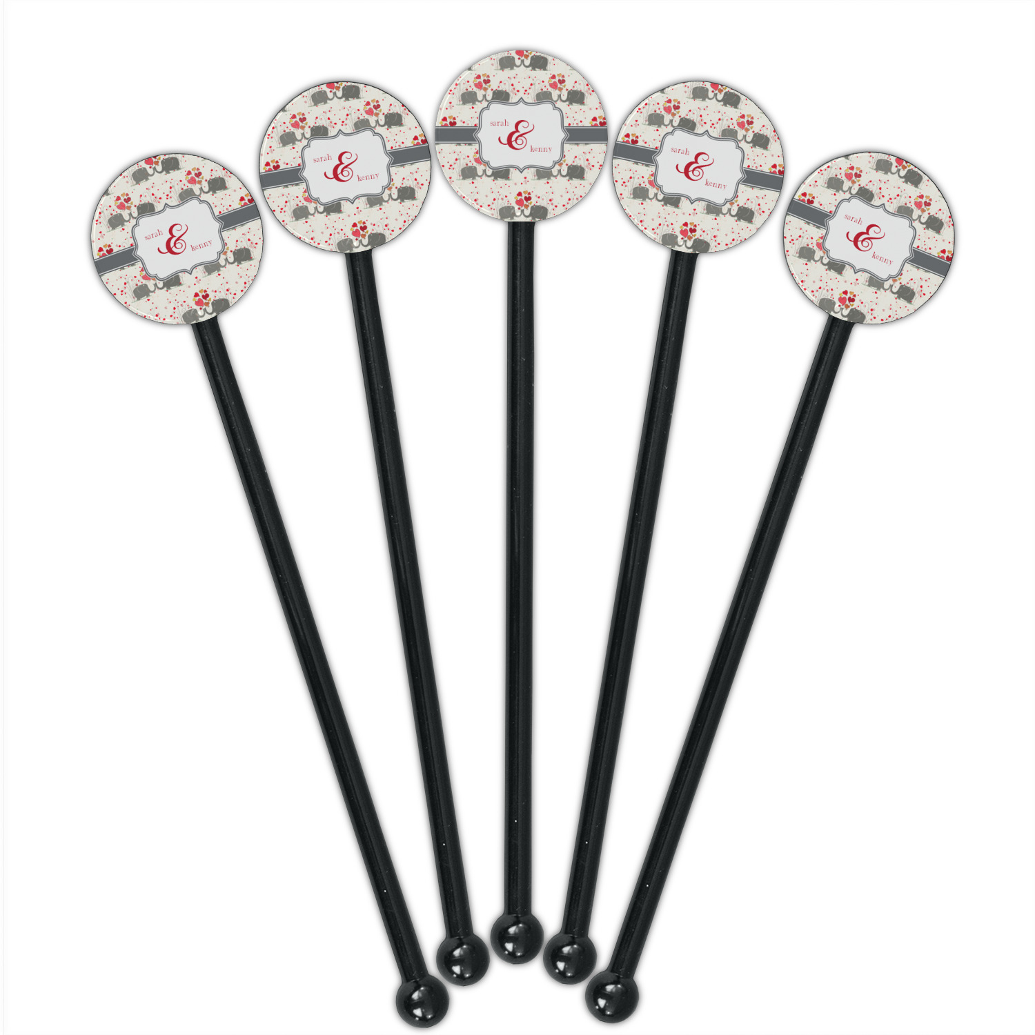 Shape + Symbol Designs for 5.5" Round Plastic Stir Sticks - Black - Single-Sided