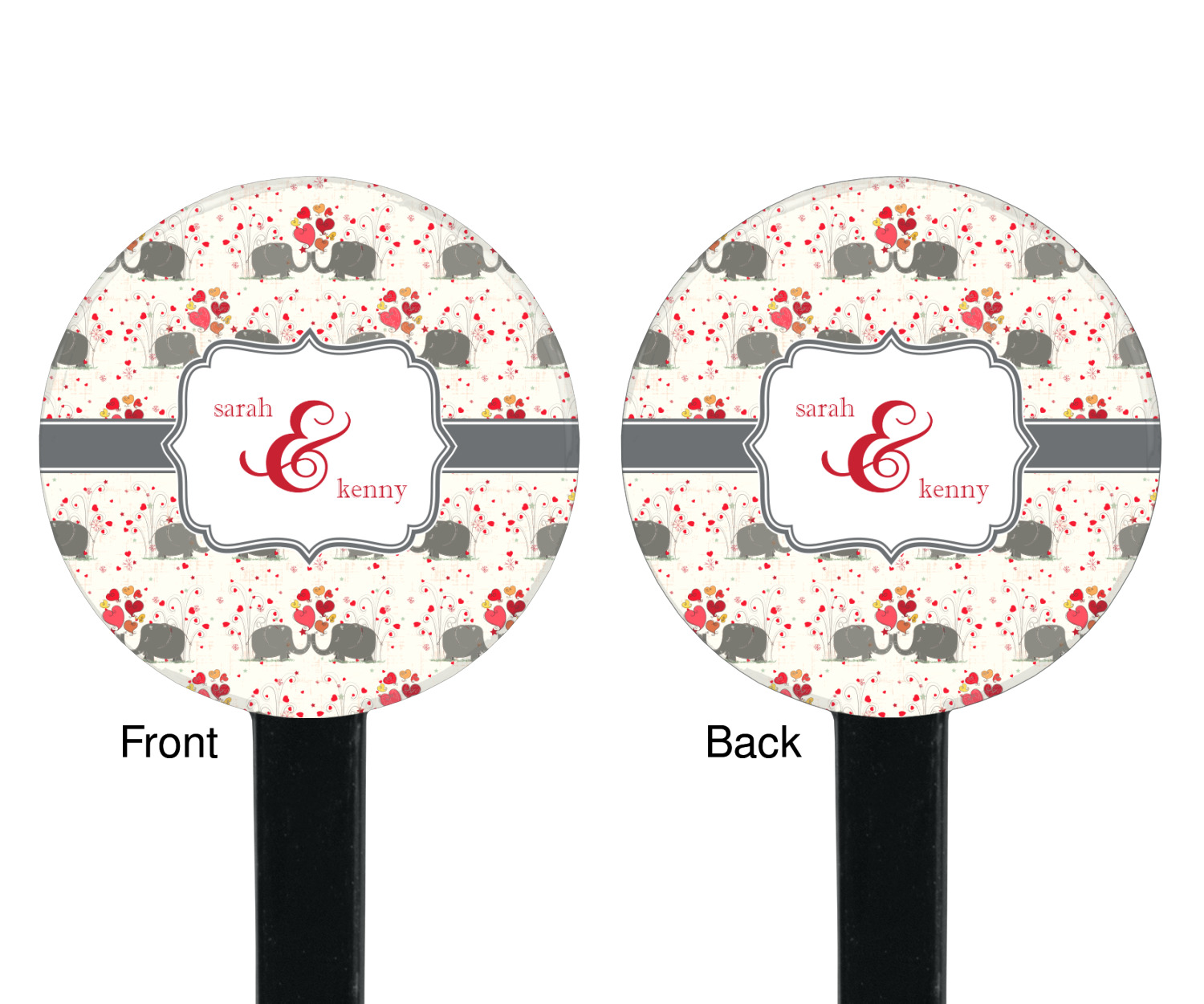 A demure gray ribbon matching the elephants' hides ties the whole design together. Add His&Her's names in the decorative label for that special touch.