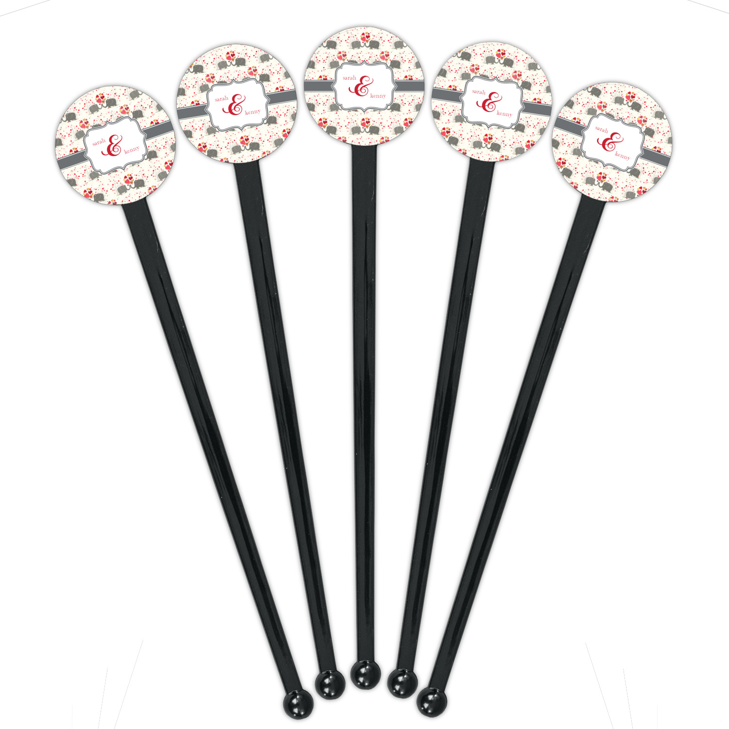 Shape + Symbol Designs for 7" Round Plastic Stir Sticks - Black - Single-Sided