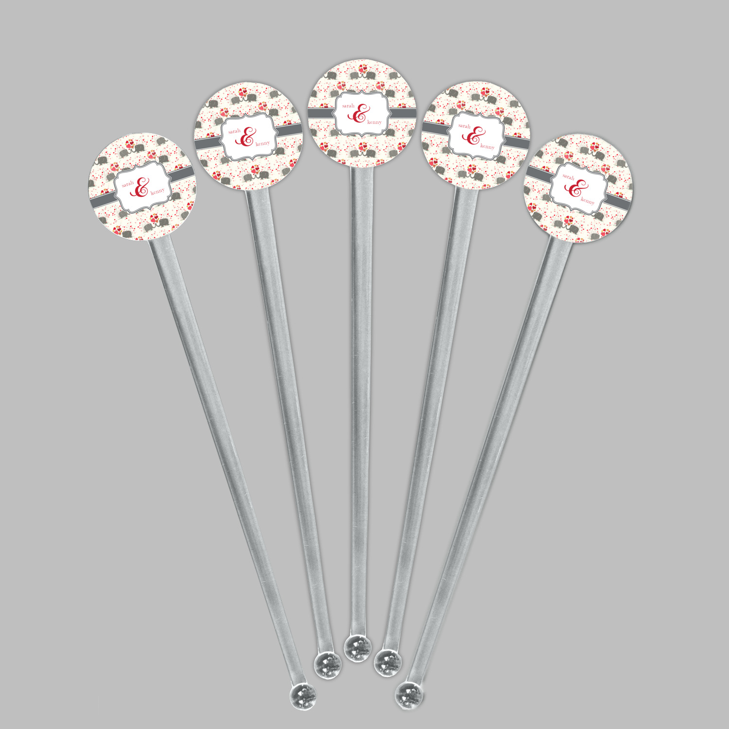Shape + Symbol Designs for 7" Round Plastic Stir Sticks - Clear