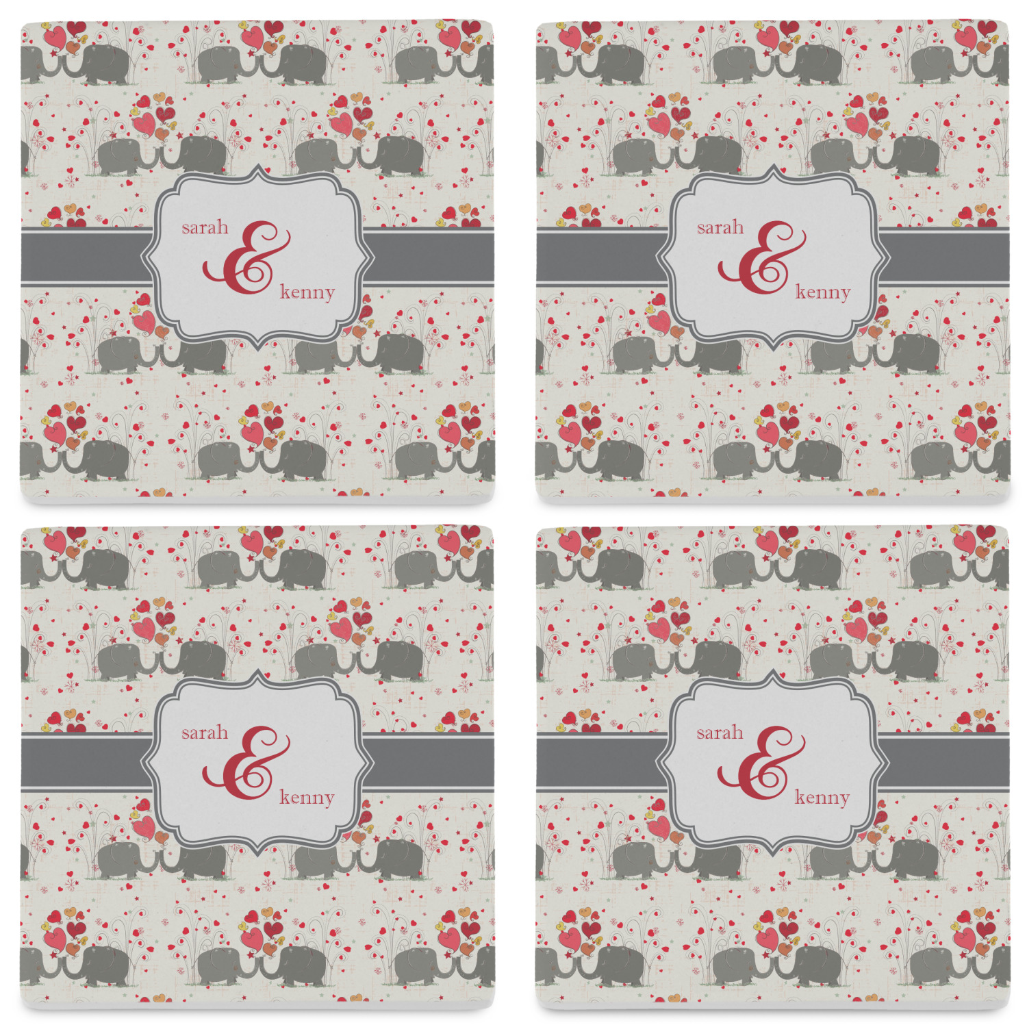 By default, the 4 coasters all have the same design on them, however, you can change that and have a different design on each one of the 4 coasters. The choice is yours.