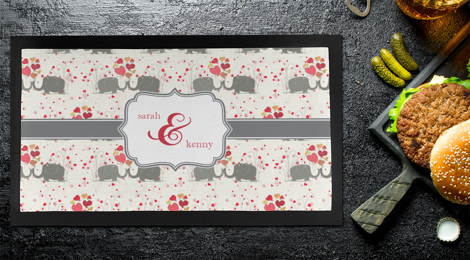 A demure gray ribbon matching the elephants' hides ties the whole design together. Add His&Her's names in the decorative label for that special touch.