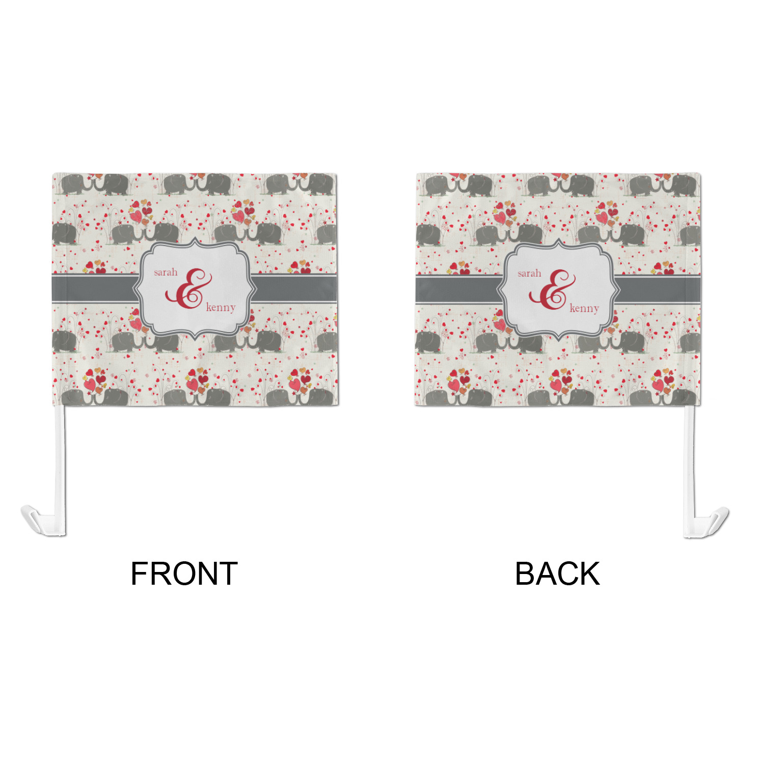 Our personalized flags are made from a durable, yet lightweight cloth that will proudly bear your logo or design of choice, while withstanding the outside elements. We have two size options - 8" x 11" and 11" x 15". Both come with a flag pole which includes a clip that secures the pole to the side window, whether it is rolled up or down. The flags are printed on both sides to display your design from all directions.