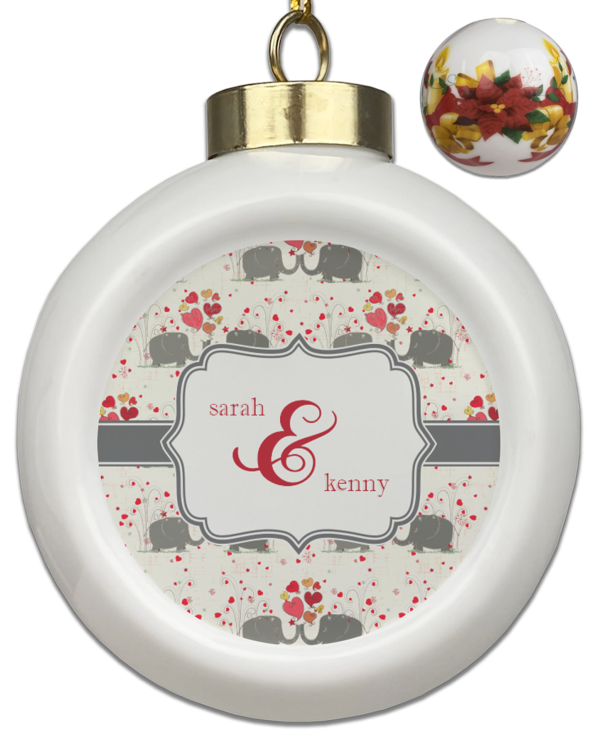 Our Christmas ornaments are a unique ceramic ball shape with a twist as it has a flat face to display your custom design! Select from one of our two design types - Christmas Tree or Poinsettia Garland - to adorn the curved back of your personal design. Each ornament measures 3H x 2.5W x 2D accompanied with a gold string accent for finishing touches to hang on your beautiful Christmas tree!