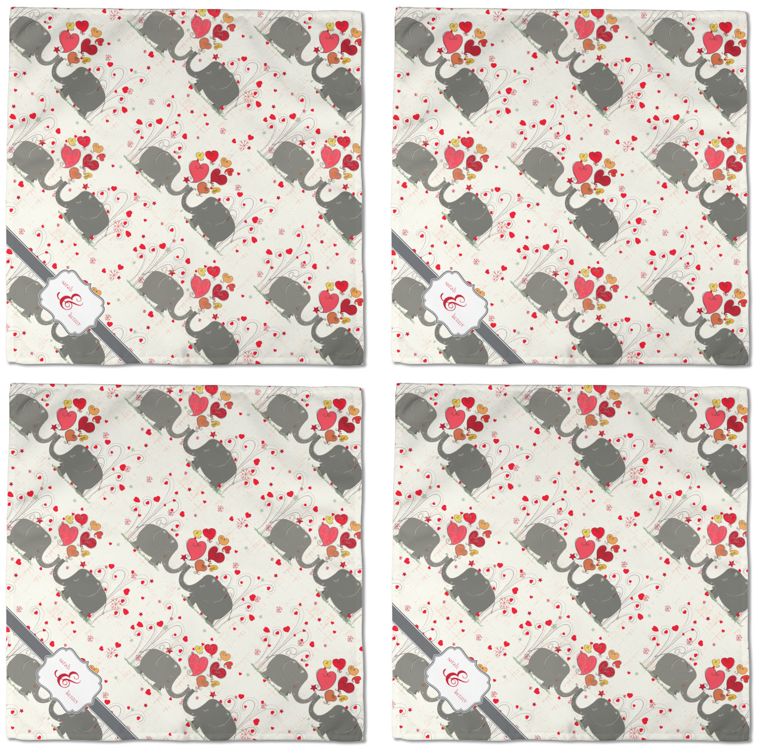 Each customizable cloth napkin is a polyester material guaranteed for long-term use. Since our napkins are cloth, it serves as a great reusable and eco-friendly dining decor. We sell personalized napkins individually or as a set of 4! Print your own unique design on all four napkins, or create four individual designs for each napkin! We offer two different napkin sizes - Cocktail napkins (approx. 10 x 10) and Dinner napkins (approx. 20 x 20). We print your design on one side, perfect for displaying your custom designed lunch napkins in any fold or table setting!