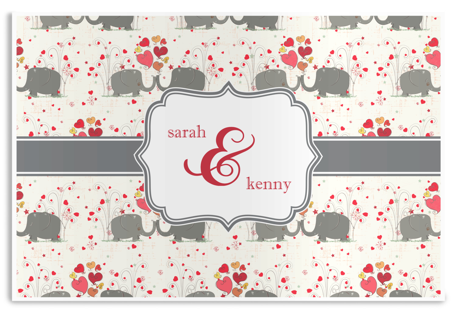 A demure gray ribbon matching the elephants' hides ties the whole design together. Add His&Her's names in the decorative label for that special touch.