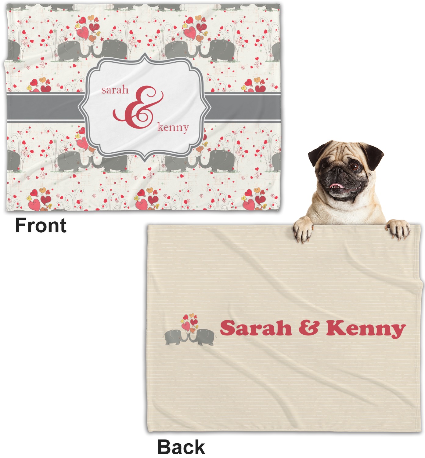 These dog blankets are crafted from a gentle, soft-to-the-touch, minky material. We print your customizations, either matching or differing, on both the top and underside of the blanket. These personalized dog blankets are available in two sizes: regular and large. Our regular size, at 40" x 30", accommodates small and some medium size dogs. At 60" x 50", our large dog blanket is a better fit for bigger breeds. Though specialized for dogs, these blankets still make a thoughtful gift for your favorite feline, or any other pet in mind!