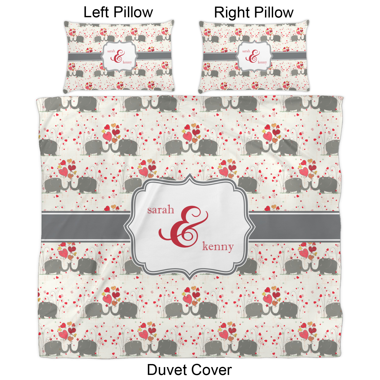 A demure gray ribbon matching the elephants' hides ties the whole design together. Add His&Her's names in the decorative label for that special touch.