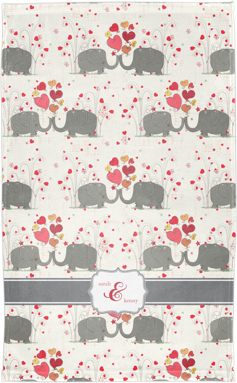 A demure gray ribbon matching the elephants' hides ties the whole design together. Add His&Her's names in the decorative label for that special touch.