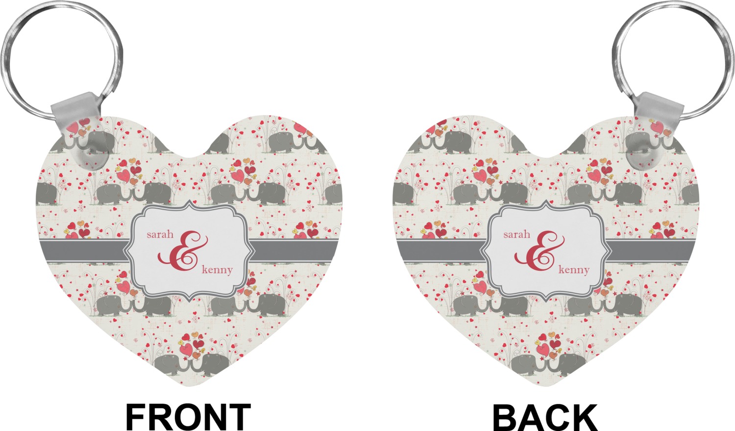 A demure gray ribbon matching the elephants' hides ties the whole design together. Add His&Her's names in the decorative label for that special touch.