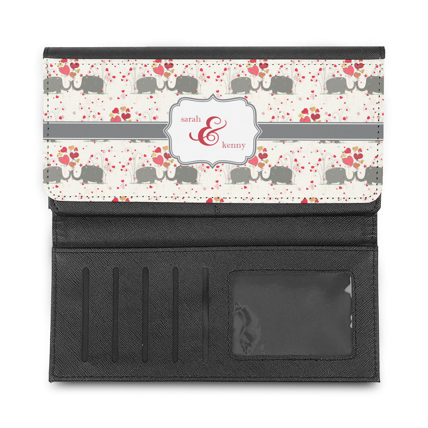 These beautiful wallets are a trifold design. The wallet is made of textured leatherette. The front section has a secure magnetic snap. The front flap is personalized with the artwork of your choice to make this wallet uniquely yours.