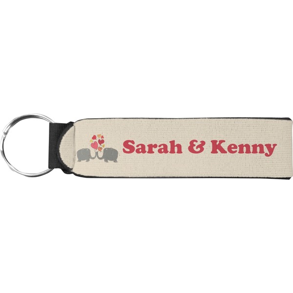 Made from neoprene, these key fob wristlets are comfortable, cushioned, easy to slip on and off; these traits allow it to maintain a slim, yet fashionable appearance, all while optimizing your efficiency. When attaching or removing keys, simply squeeze open the included metal ring. These fobs measure at around 4 inches, and have a bit of a stretch. Thus, they are best suited for small to medium size wrists. If you require a larger size, check out our webbing keychain fob for larger sizing.