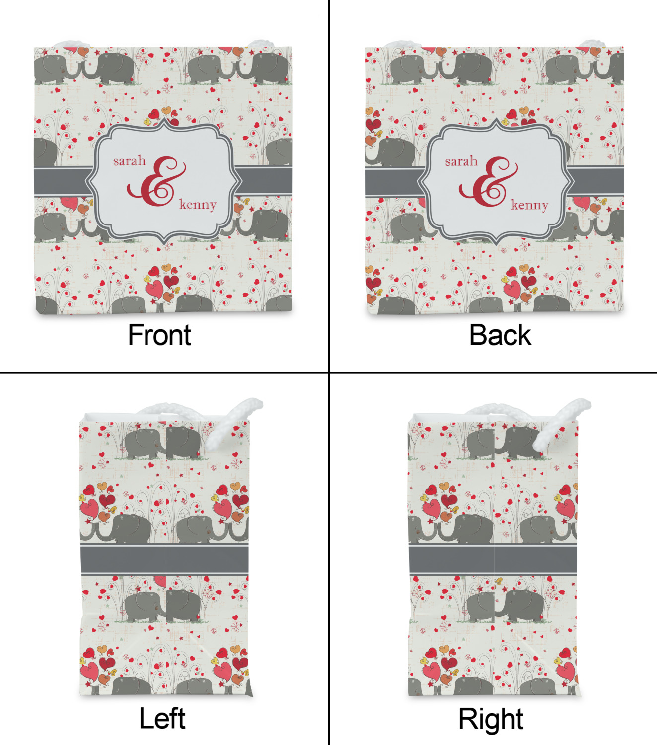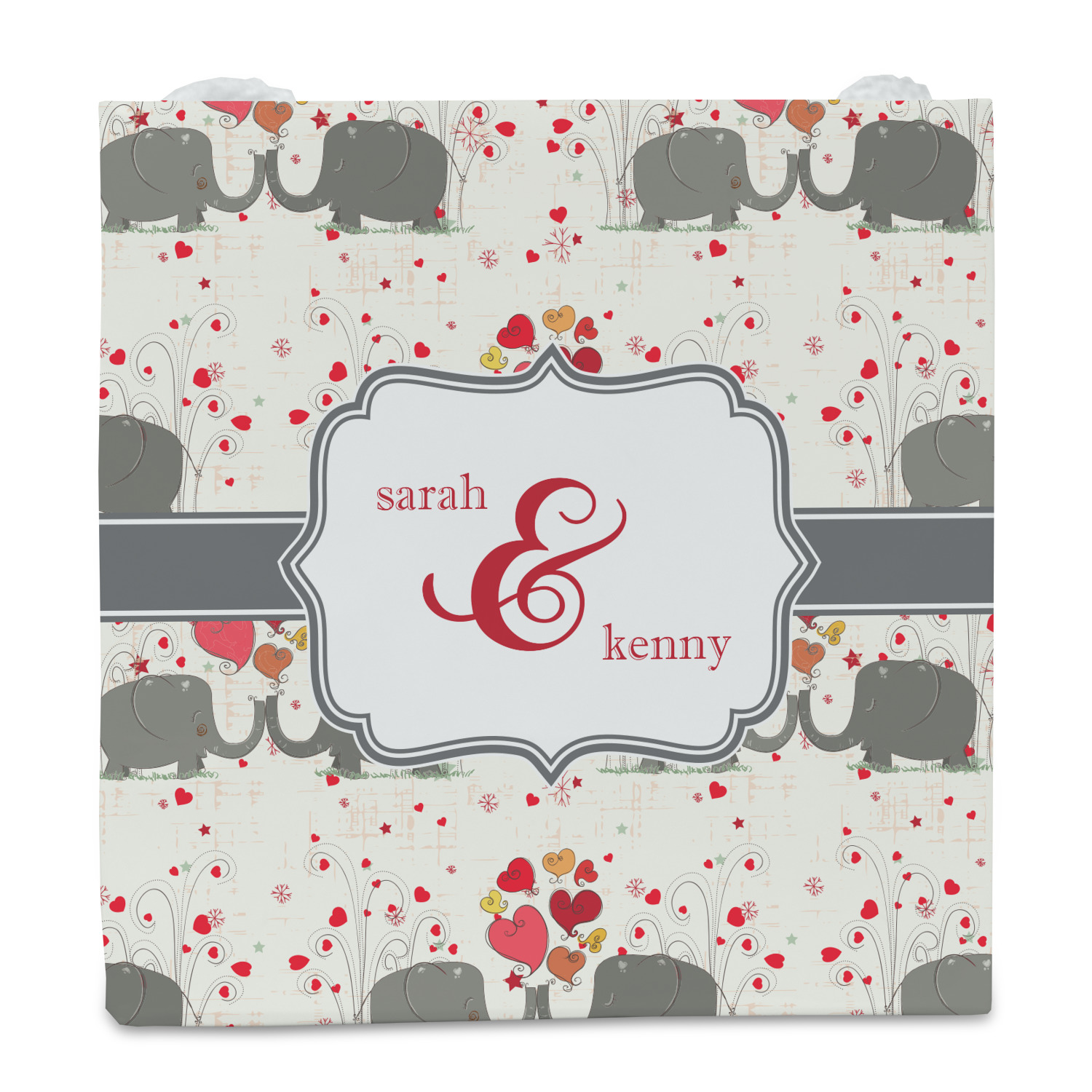 A demure gray ribbon matching the elephants' hides ties the whole design together. Add His&Her's names in the decorative label for that special touch.