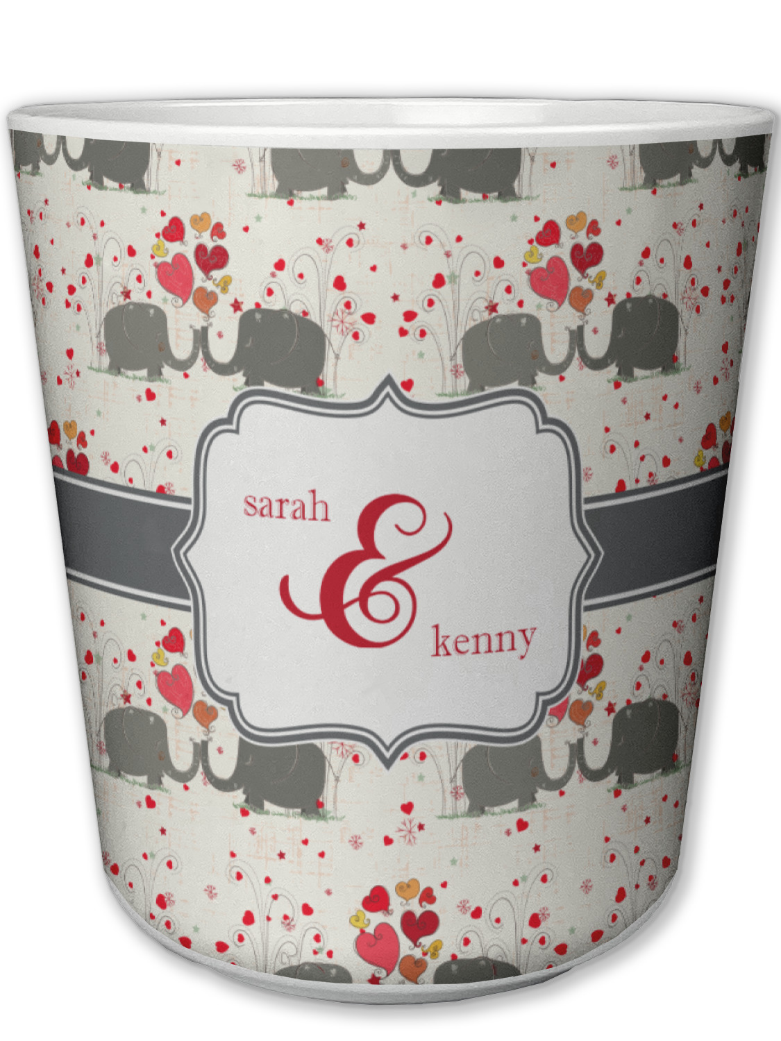 A demure gray ribbon matching the elephants' hides ties the whole design together. Add His&Her's names in the decorative label for that special touch.