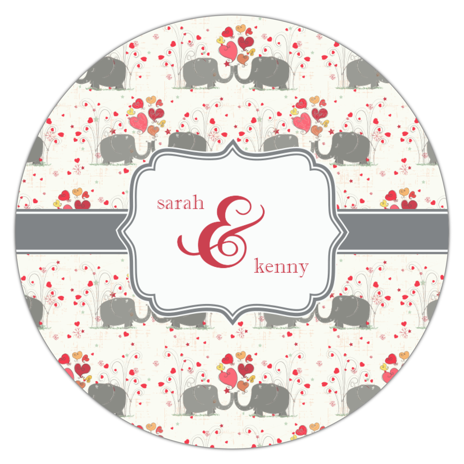 A demure gray ribbon matching the elephants' hides ties the whole design together. Add His&Her's names in the decorative label for that special touch.
