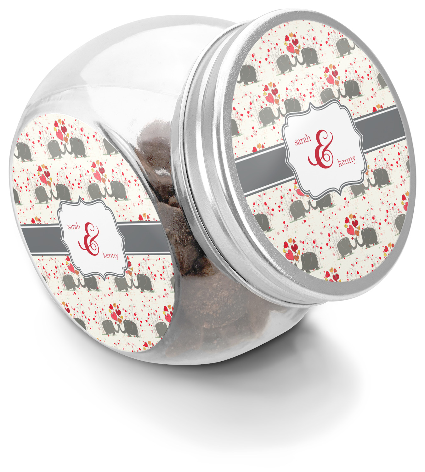 This treat jar is an excellent way to store treats for your favorite canine or feline. Moreover, their delicate, classy appearance makes them a tasteful addition to your countertop's décor. Crafted from clear glass, its unique construction and silver metal, screw-on lid allows for quick and easy access. Three, permanent, vinyl stickers are applied to both sides of the jar and lid, presenting your personalized design. The base of this glass, dog treat jar is 3.4" x 4.75", and the jar stands at 5" tall. Though on the smaller side, this jar is best suited for smaller treats or training treats.