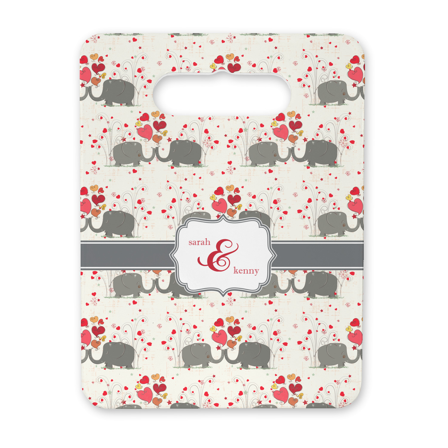 A demure gray ribbon matching the elephants' hides ties the whole design together. Add His&Her's names in the decorative label for that special touch.