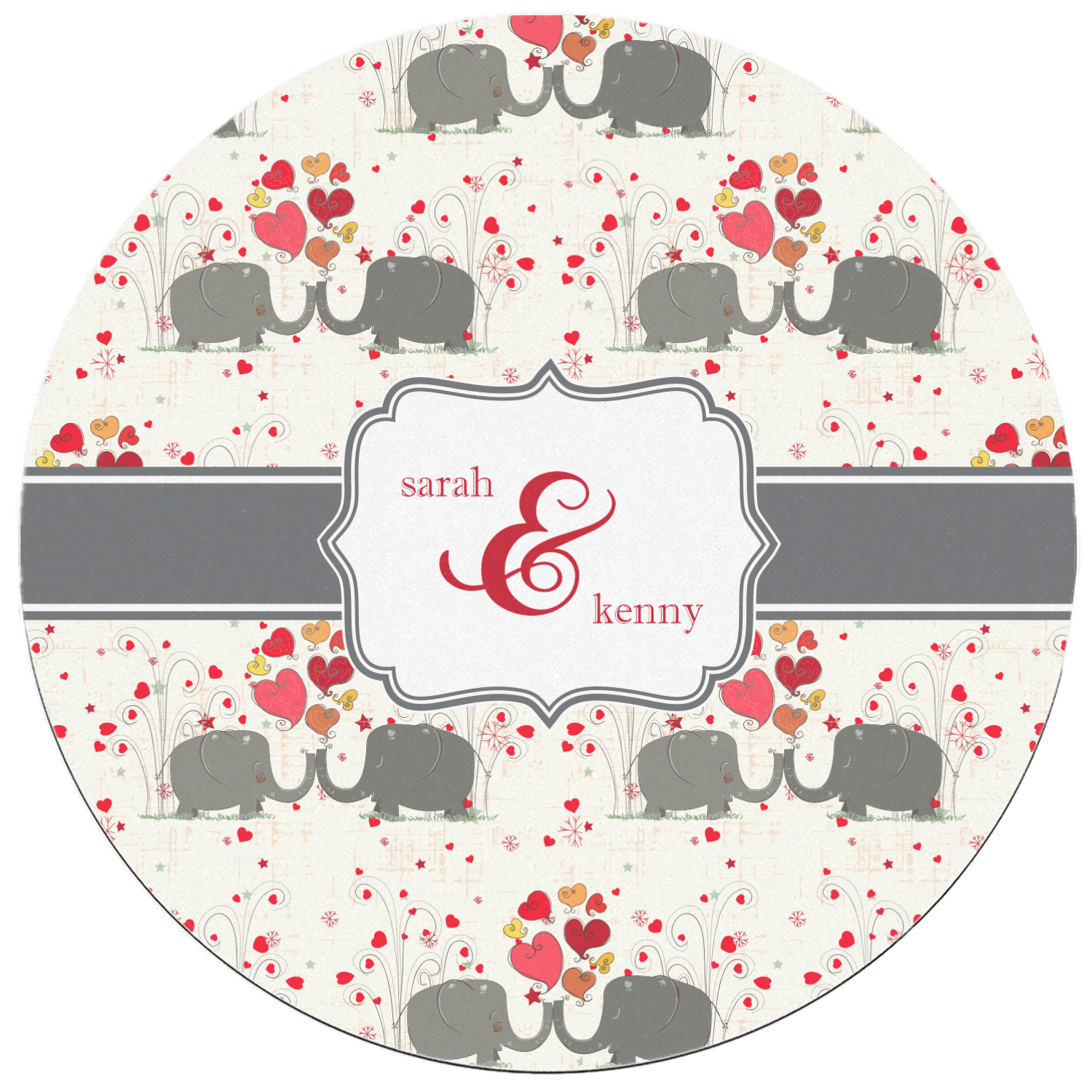 A demure gray ribbon matching the elephants' hides ties the whole design together. Add His&Her's names in the decorative label for that special touch.