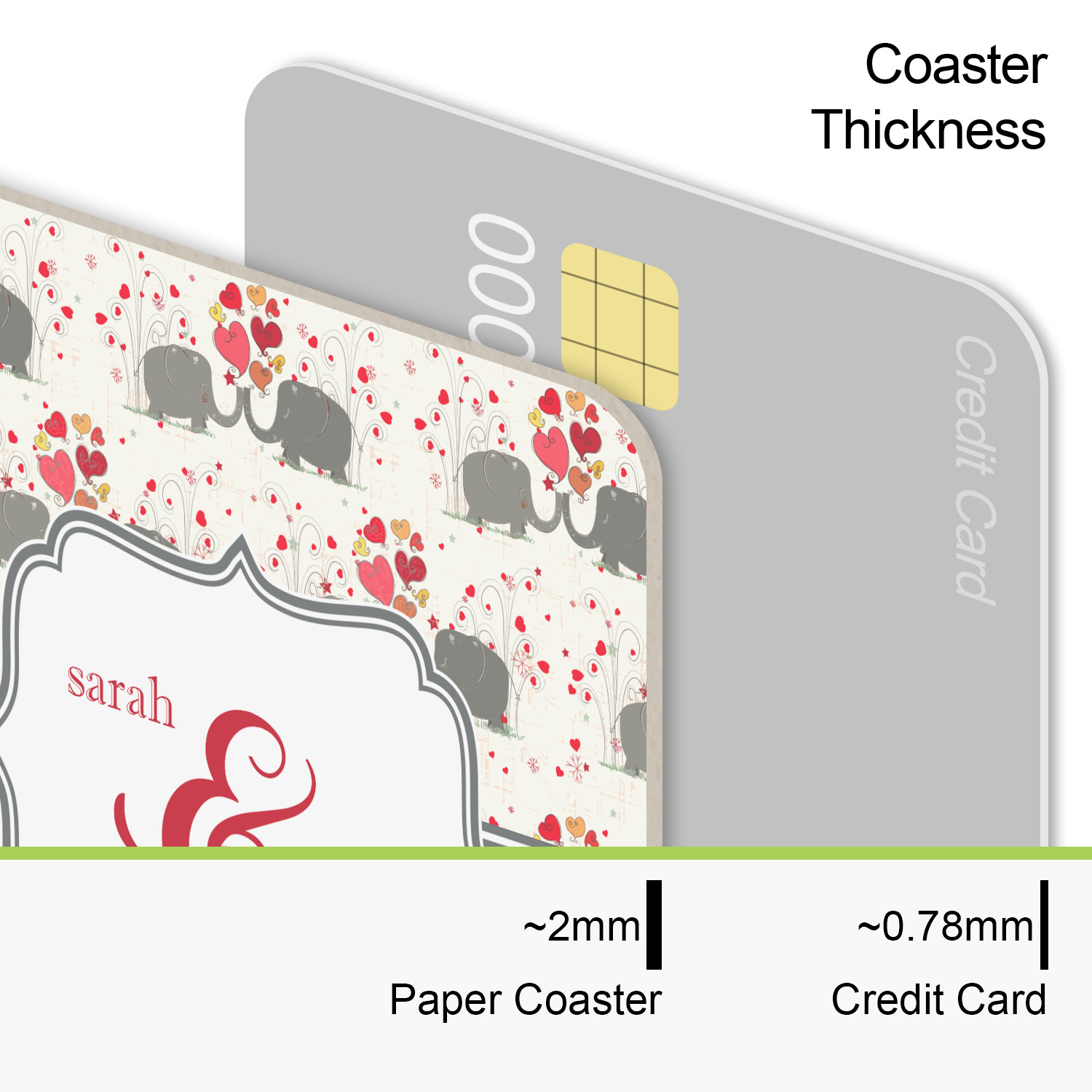 These coasters are perfectly sized for just about any drink being a 4"in square. The paper construction is a thick heavyweight 80 point pulpboard perfect for absorbing the condensation on the outside of your glass.