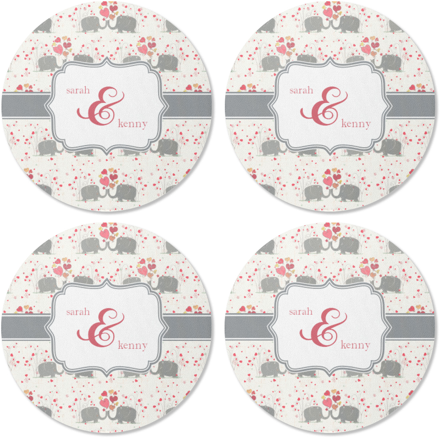 A demure gray ribbon matching the elephants' hides ties the whole design together. Add His&Her's names in the decorative label for that special touch.