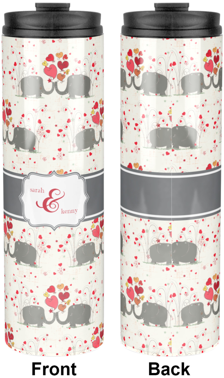 A demure gray ribbon matching the elephants' hides ties the whole design together. Add His&Her's names in the decorative label for that special touch.
