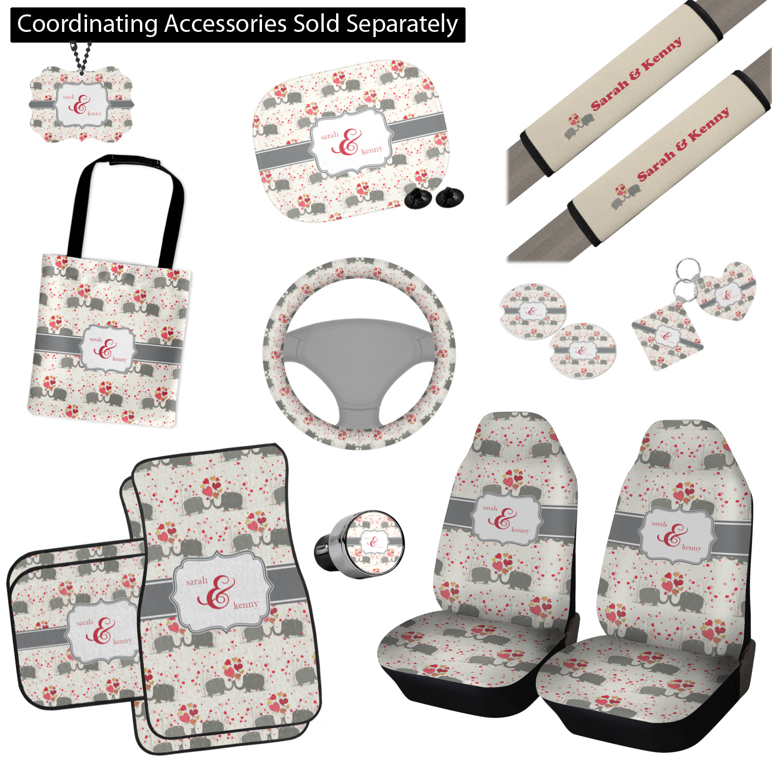A demure gray ribbon matching the elephants' hides ties the whole design together. Add His&Her's names in the decorative label for that special touch.