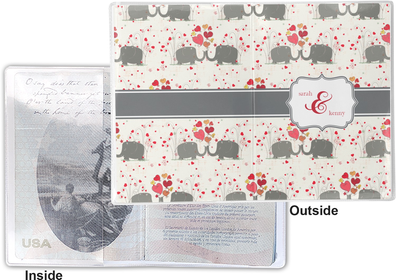 This cover is made of a sturdy clear vinyl with a personalized vinyl insert inside. There is a large and a small pocket on either side to hold the covers of your passport easily and firmly. The passport holder is approximately 7.5" x 5.25", the perfect size to snugly fit your passport. This slim cover is the perfect way to protect your passport without being one more bulky item you have to carry.