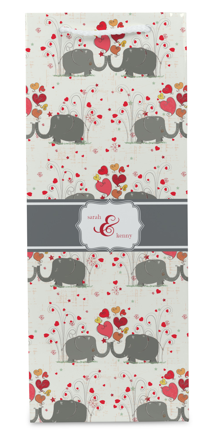 A demure gray ribbon matching the elephants' hides ties the whole design together. Add His&Her's names in the decorative label for that special touch.