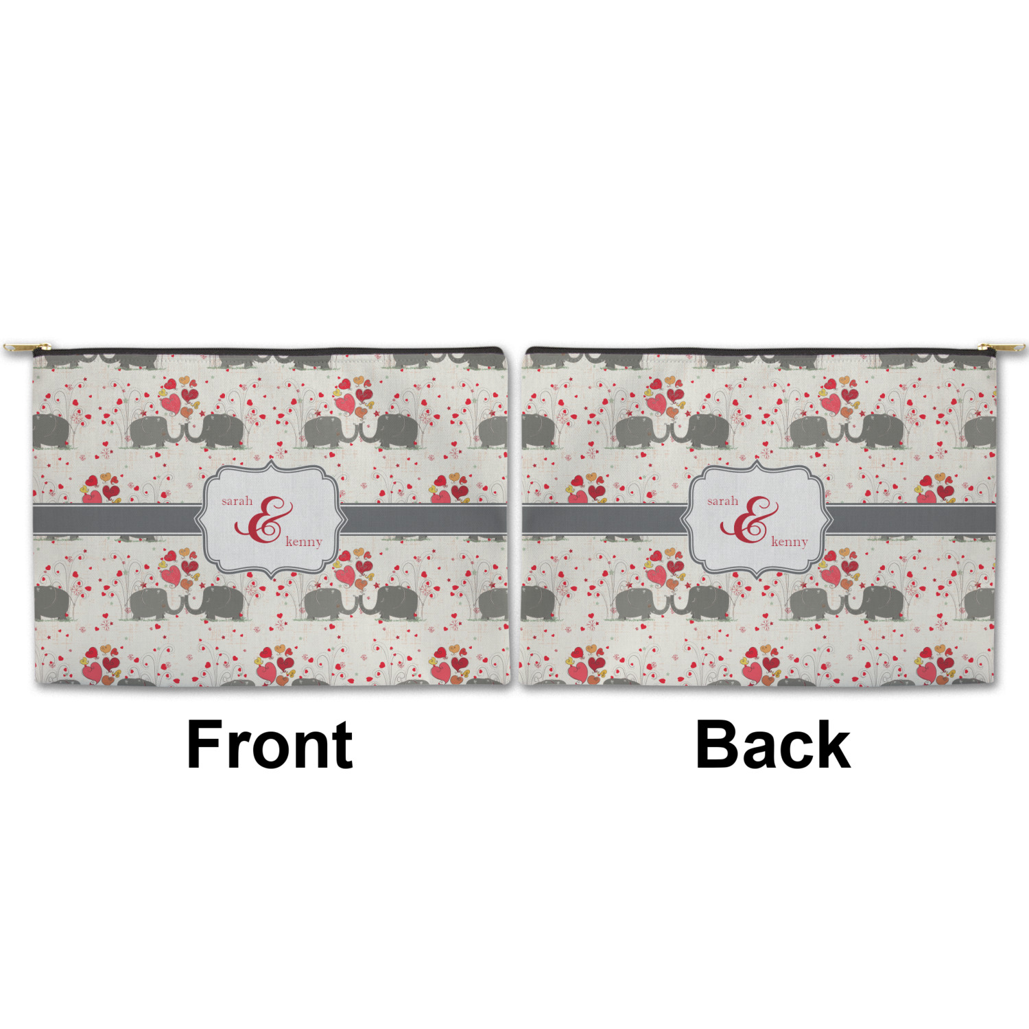 You can design both the front and the back of the pouch - same design, two complementary designs or two totally different designs - the choice is yours! We offer many different personalization styles i.e. name, name & initial, monograms - so the choice to personalize is also yours.