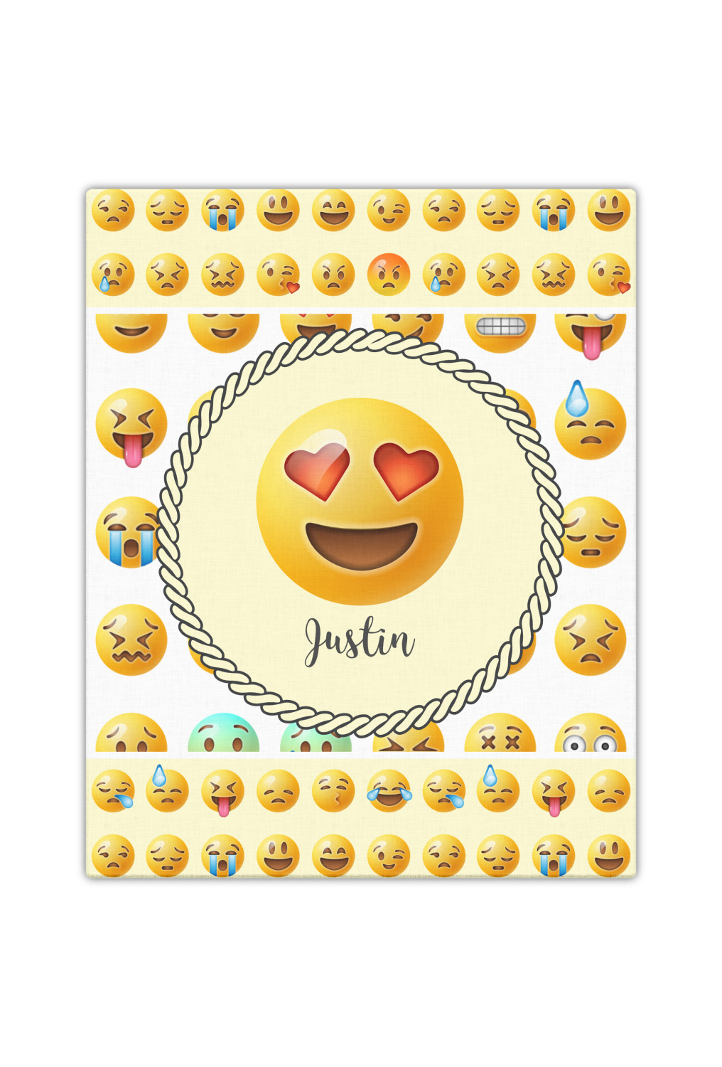 There are so many ways to customize this design. We have numerous other emoji patterns in our system, including a make your own emoji pattern with one or three different emojis! (make these changes in advanced mode) You can change the density, as well as the background color. You can change your personalization style; for your graphic we have all the different emojis in our system - so change it your favorite. You can also upload your own emoji!