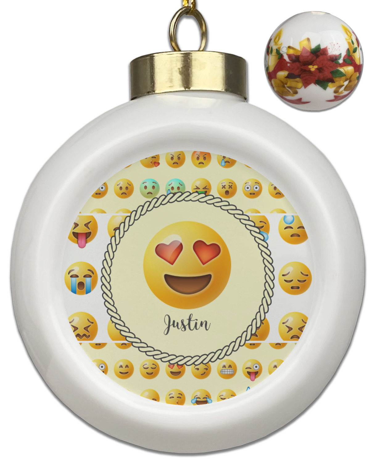 Our Christmas ornaments are a unique ceramic ball shape with a twist as it has a flat face to display your custom design! Select from one of our two design types - Christmas Tree or Poinsettia Garland - to adorn the curved back of your personal design. Each ornament measures 3H x 2.5W x 2D accompanied with a gold string accent for finishing touches to hang on your beautiful Christmas tree!