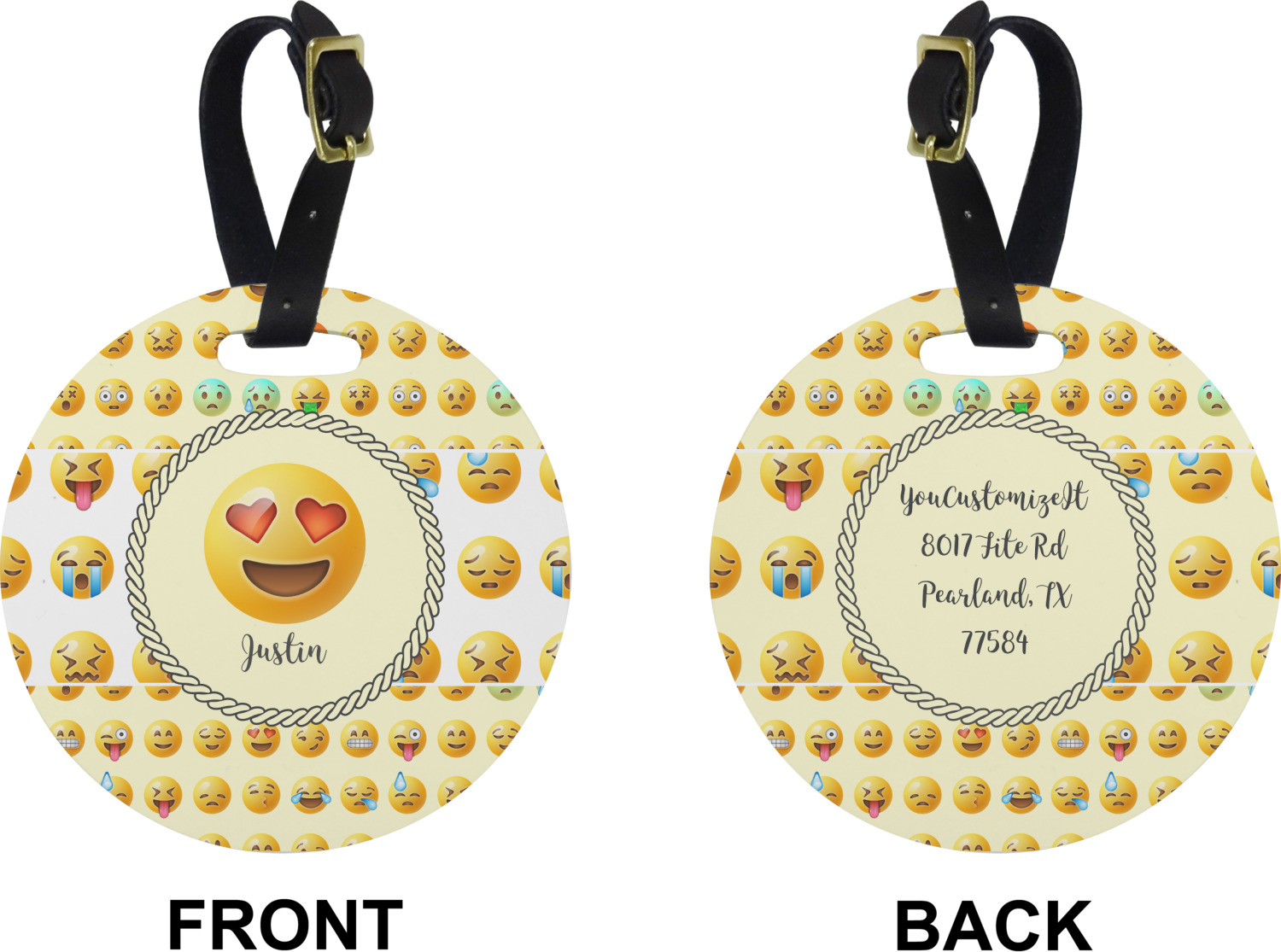 These personalized bag tags are sold in a variety of shapes, so that you may find the product that meets your vision exactly. We sell a round luggage tag, which measures at approximately 4" x 4". Our square luggage tag is about 3.5" x 3.5", while our rectangular version is 2.75" x 4 ".